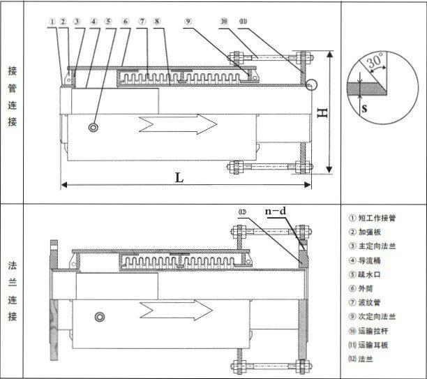 1.內(nèi)襯筒方向應(yīng)與介質(zhì)流向一致(膨脹節(jié)上有流向標(biāo)志)